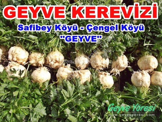 Geyve Kerevizi (Safibey Köyü Ve Çengel Köyü) Geyve ve Yöremizde Kereviz yetiştiriciliği Her Geçen gün Önem Kazanıyor. Geyve’mizin Şirin Köylerinden Safi bey ve Çengel Köylerinde Kereviz Yetiştiriciliği Önemli Gelir Kaynağı Oluyor. Yöremizin İstanbul, Ankara, Bursa, Eskişehir ve Bir çok İle Yakın Olması Ulaşım İmkanlarının Uygun Olması.