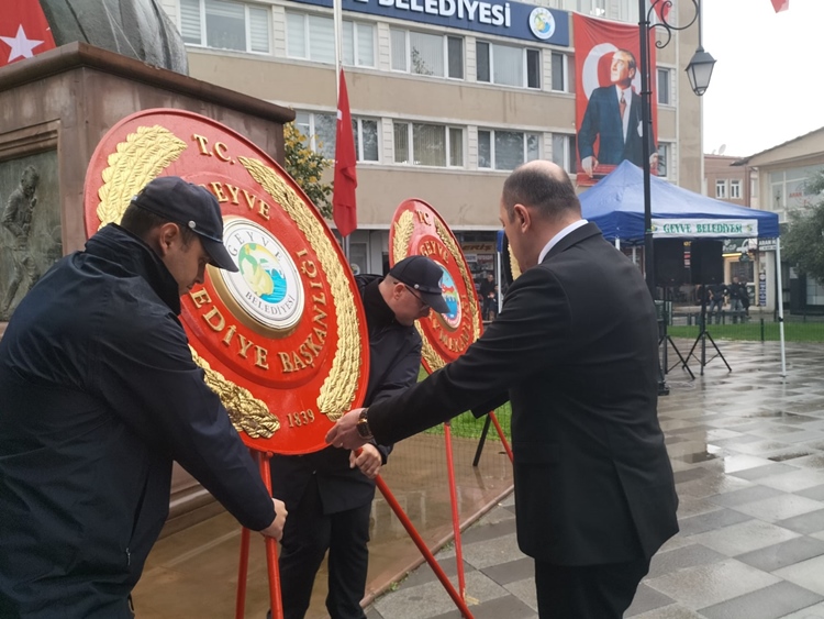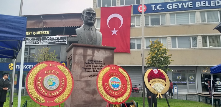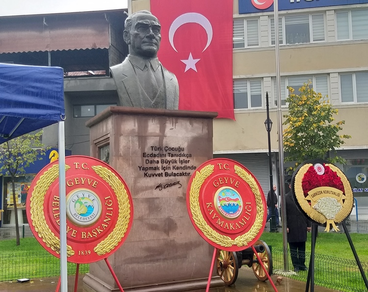 Geyve İlçesinde, Cumhuriyet Bayramının 102. Yıldönümü kutlamaları çerçevesinde Cumhuriyet Meydanındaki Atatürk Anıtına Çelenk Sunma Töreni yapıldı.