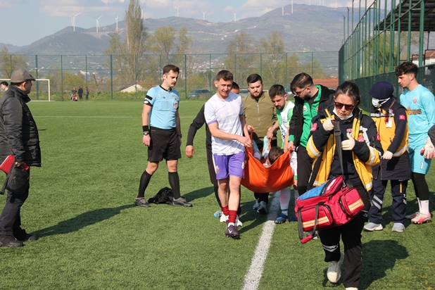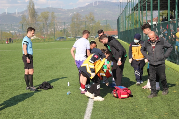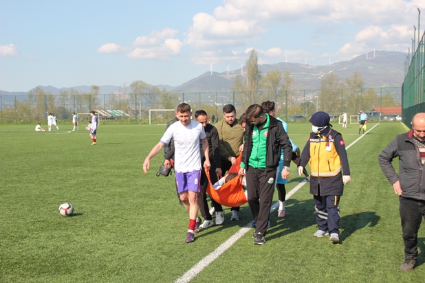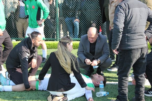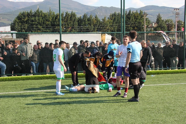 Son 15 Dakikaya Girildiğinde Alifuatpaşaspor’un Tecrübeli Futbolcusu Semih Sakatlandı. (VİDEODA İZLEYECEĞİNİZ ÜZERE) Hakem ve Futbolcular Müdahale Etti. Futbolcunun Durumunun Ciddi Olduğu Sakatlığının Ciddi Olduğu Düşünülerek Ambulans Çağrıldı. Maçı İzleyen Geyve Belediye Başkanı Selçuk YILDIZ Sahaya İnerek Futbolcuya Moral Vermeye Çalıştı. Ambulansın Gelmesiyle Birlikte Futbolcu Semih Geyve Devlet Hastanesine Kaldırıldı.